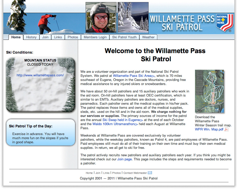 Willamette Pass Ski Patrol website